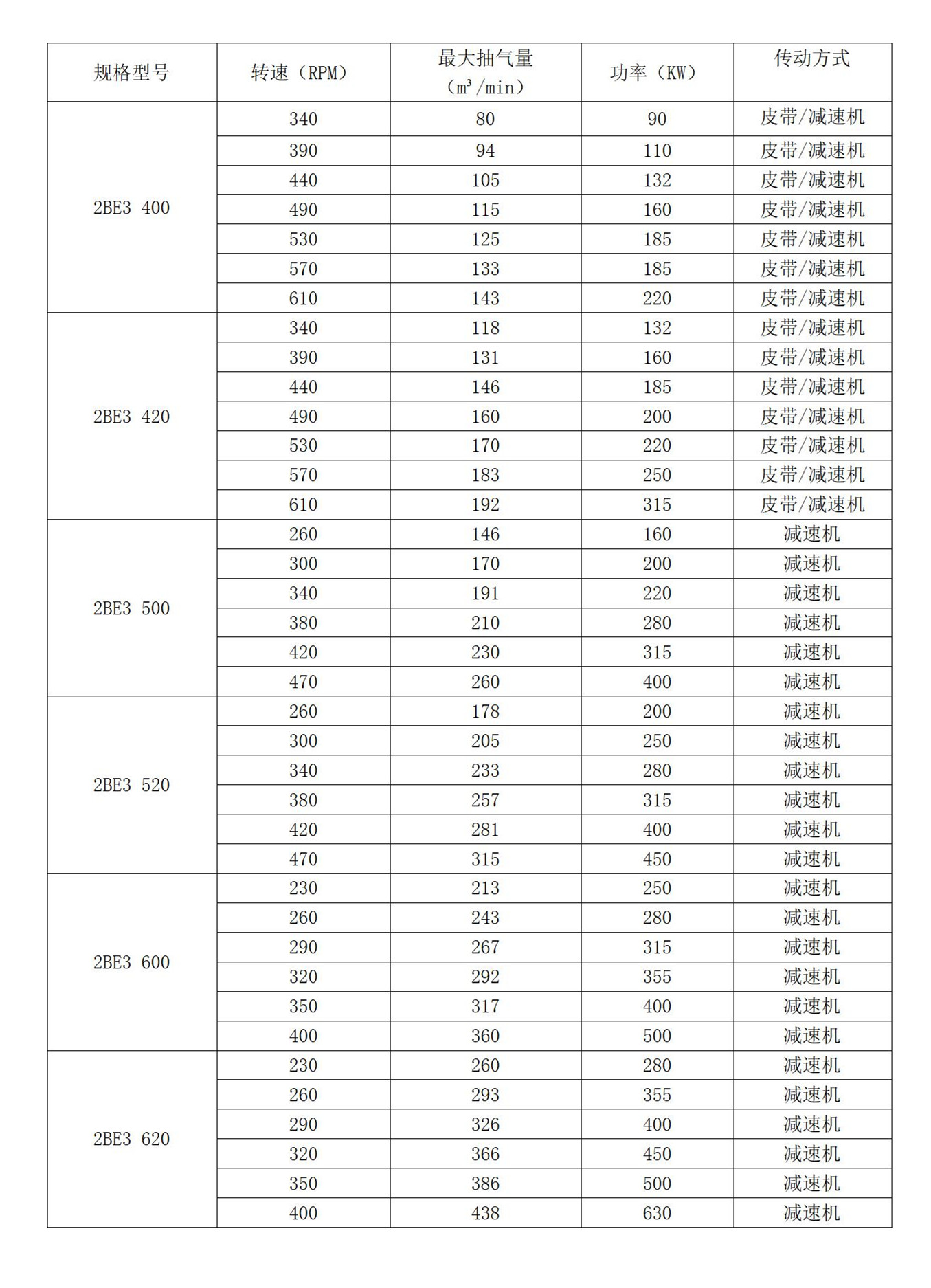 2BE3系列液環真空泵因體積大,吸氣量大,能耗功率也同時加大,因此電機可選為高壓電機,傳動推薦減速機傳動。