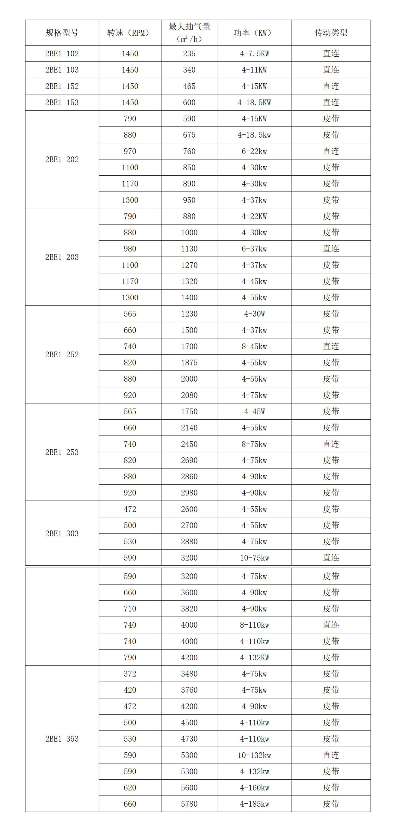 2BE1系列液環(huán)真空泵技術(shù)參數(shù):